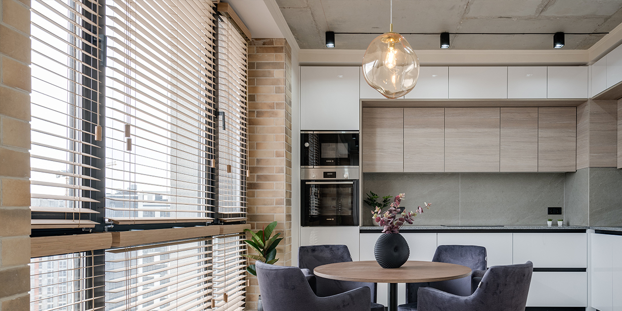 Made up of wooden horizontal slats that can be tilted to regulate light and enjoy window views, Venetians are a popular and flexible choice of blind.