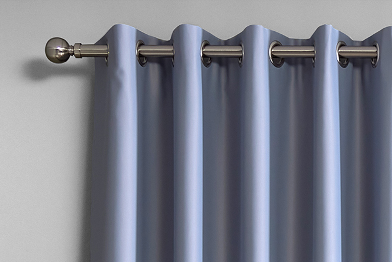 Our poles and finials come in a range of colours and finishes to match your décor, making style choices for more than just your curtains. For eyelet curtains, having a pole is the only choice as they need to be threaded on to the pole. We manufacture 40mm eyelets in our curtains, a good fit for pole diameters up to 35mm. However, we can provide bespoke quotes for eyelet curtains to fit poles bigger than that.